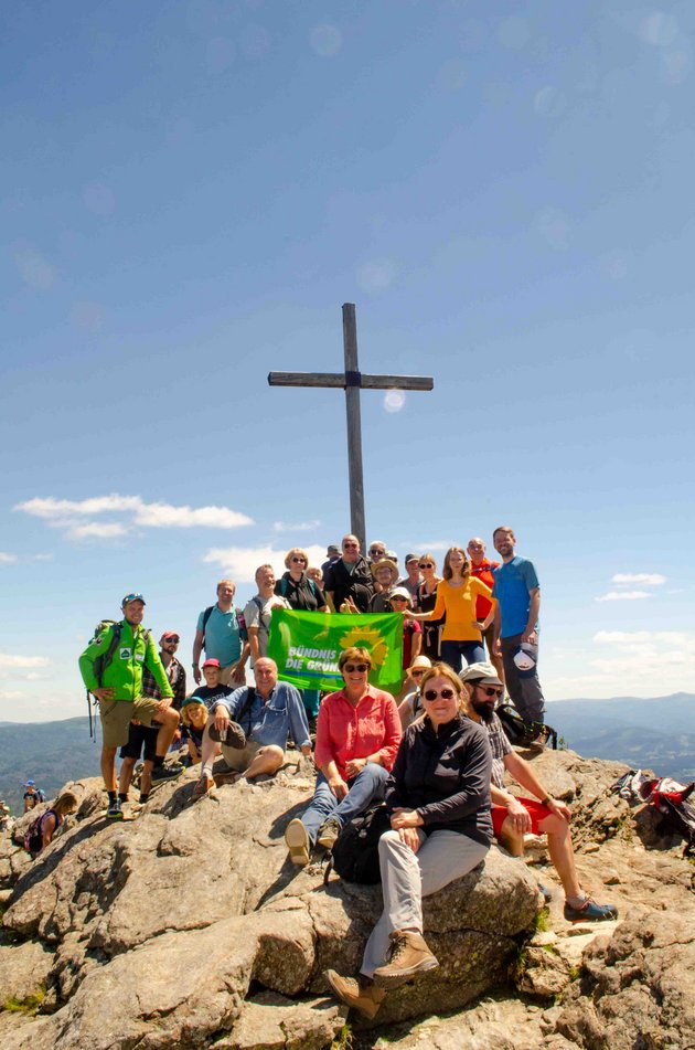 Unter dem Gipfelkreuz des Großen Arbers gönnten sich die Grünen Parlamentarier eine