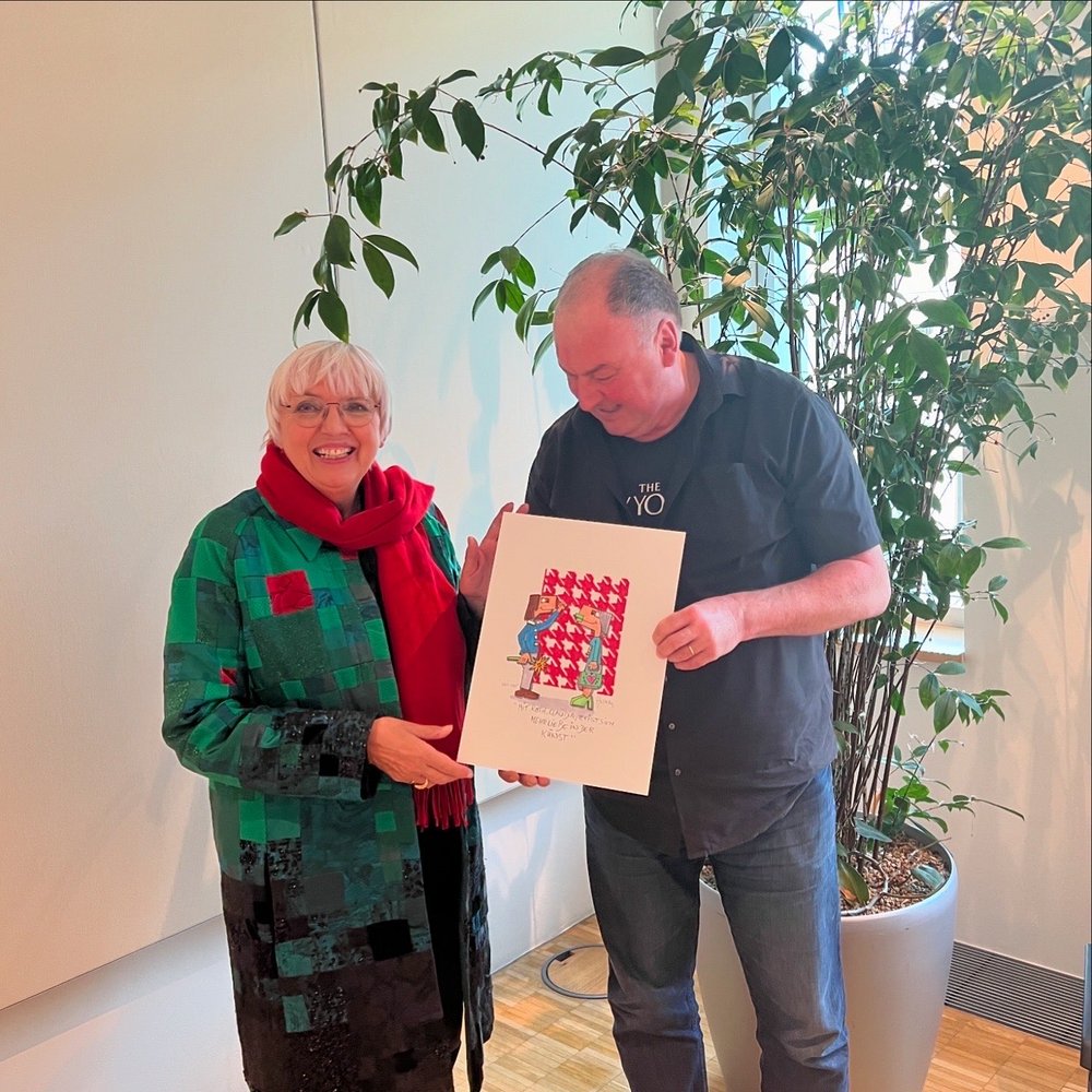 Letzte Woche hat sich Erhard Grundl mit Claudia Roth getroffen und ihr das Bild überreicht. Er freut