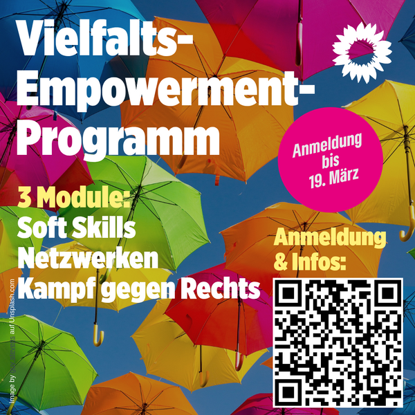 Alle Infos zum Programm gibt es im Wissenswerk: https://netz.gruene.de/de/wissenswerk/2025-02/vielfalts-empowerment-programm