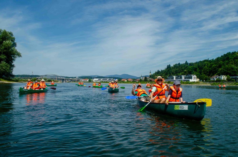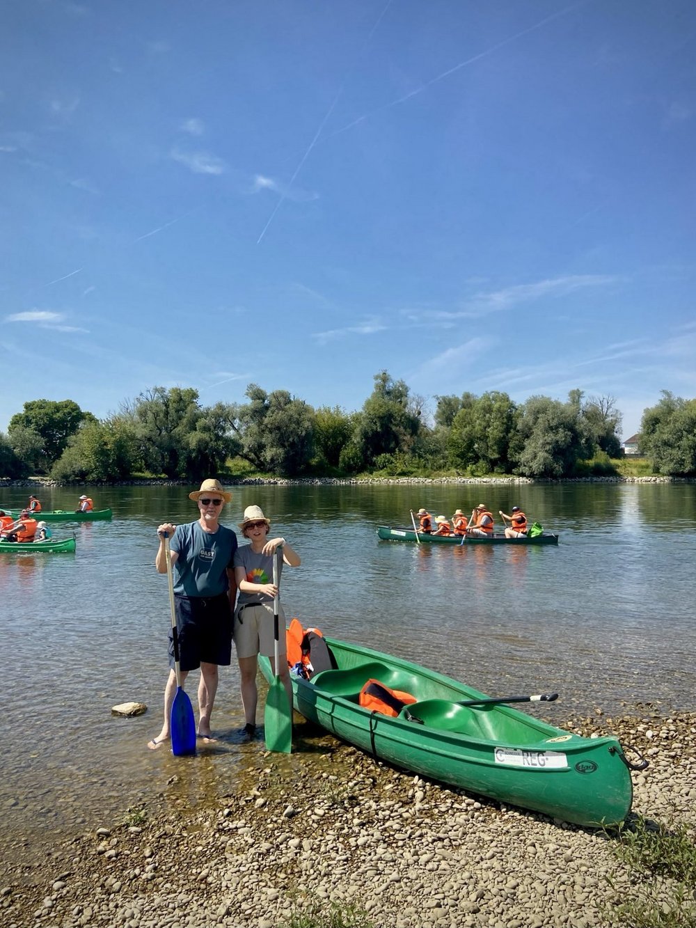 Jedes Jahr aufs Neue stellt sich die Frage, ob die Tradition der Grünen Donaupaddeltour seit 30 Jahren besteht oder sogar etwas länger oder kürzer. Das tat dem Vergnügen keinen Abbruch und so setzten sich die Paddler:innen in Deggendorf in die Boote und folgten dem Fluss und seiner Strömung bis zum Mühlhamer Keller. Die Region beheimatet die letzten großen Auwälder Mitteleuropas an der Isarmündung und stellt ein einzigartiges Ökosystem dar, dessen Schutzstatus trotz bisheriger Erfolge auch weiter gefestigt werden muss.