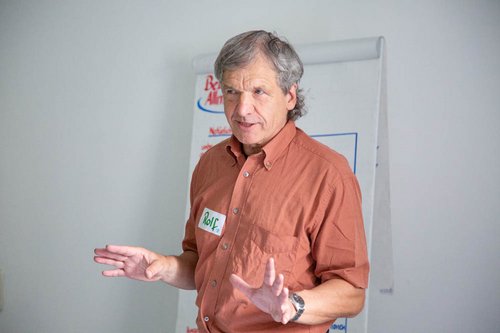 Der Rosenheimer Umweltaktivist und Mediator Dipl.-Psych. Rolf Berker klärte seine Teilnehmer*innen im Workshop "Konflikte beim politischen Engagement: Klären und Vermeiden" über Konfliktvermeidung und Lösungswege auf, wenn sie meist überraschend am Infostand vor Ort auftauchen.