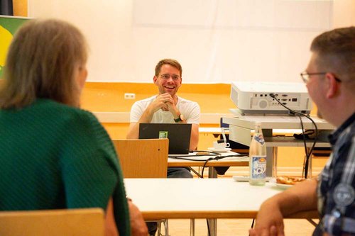 Und im letzten "Workshop: Arbeit im Kreisverband: Wie bekomme ich alles unter einen Hut?" mit dem Landesvorsitzenden Grüne Bayern Thomas von Sarnowski gab es eine Extraportion Detailwissen zur eigenen Mitarbeit im heimatlichen Kreisverband, die Lösungsmöglichkeiten bei emotionalen oder konträren Engagement-Realitäten. Auch wie die Grundlagen der Zusammenarbeit in Vorständen und zwischen den Partei-Ebenen gut strukturiert werden können und wo man sich Unterstützung holen kann, gehörten hier für die anwesenden Mitglieder zum Workshop-Inhalt des Landesvorsitzenden.