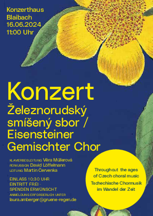Im Böhmerwald und im Zwieseler Winkel ist er längst ein Begriff, der gemischte Chor aus Böhmisch Eisenstein. Auch dass hier nicht nur tschechische, sondern auch eine gute Handvoll deutscher Sängerinnen und Sänger mitwirken, ist bekannt. In der Schweiz, in Italien, England, Österreich und Slowenien trat der Chor bereits erfolgreich auf – und bald im Konzerthaus Blaibach.